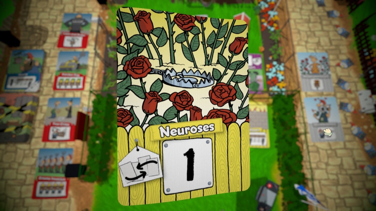 Это карточная игра, в которой есть разного рода колоды. Все они имеют отношения к вышеупомянутому заданию. Протагонистом будет выступать маленький гном в шапке, который и будет творить сумасшедшие вещи. Он сможет возводить теплицы, а также поставить небольшую будку для верного пса. Есть возможность стричь газон, живую изгородь, кусты, прополоть цветы соседским ребятам или устроить водные процедуры для сада.