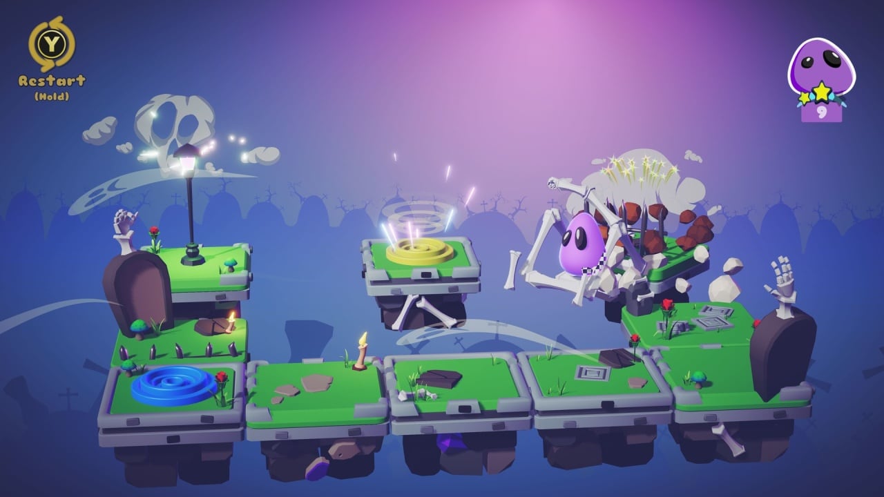 Итак, в BouncyBoi in Puzzle Land в роли основного действующего лица выступает забавный слизень. Он фиолетовый, с большими щенячьими глазами, а также довольно веселый и колоритный. Его зовут Слаймбол, и он готов на все, чтобы поучаствовать в этих сложностях. А еще он прыгает и бегает (ну, как бегает, скорее просто быстро передвигается, потому что у него нет ног).