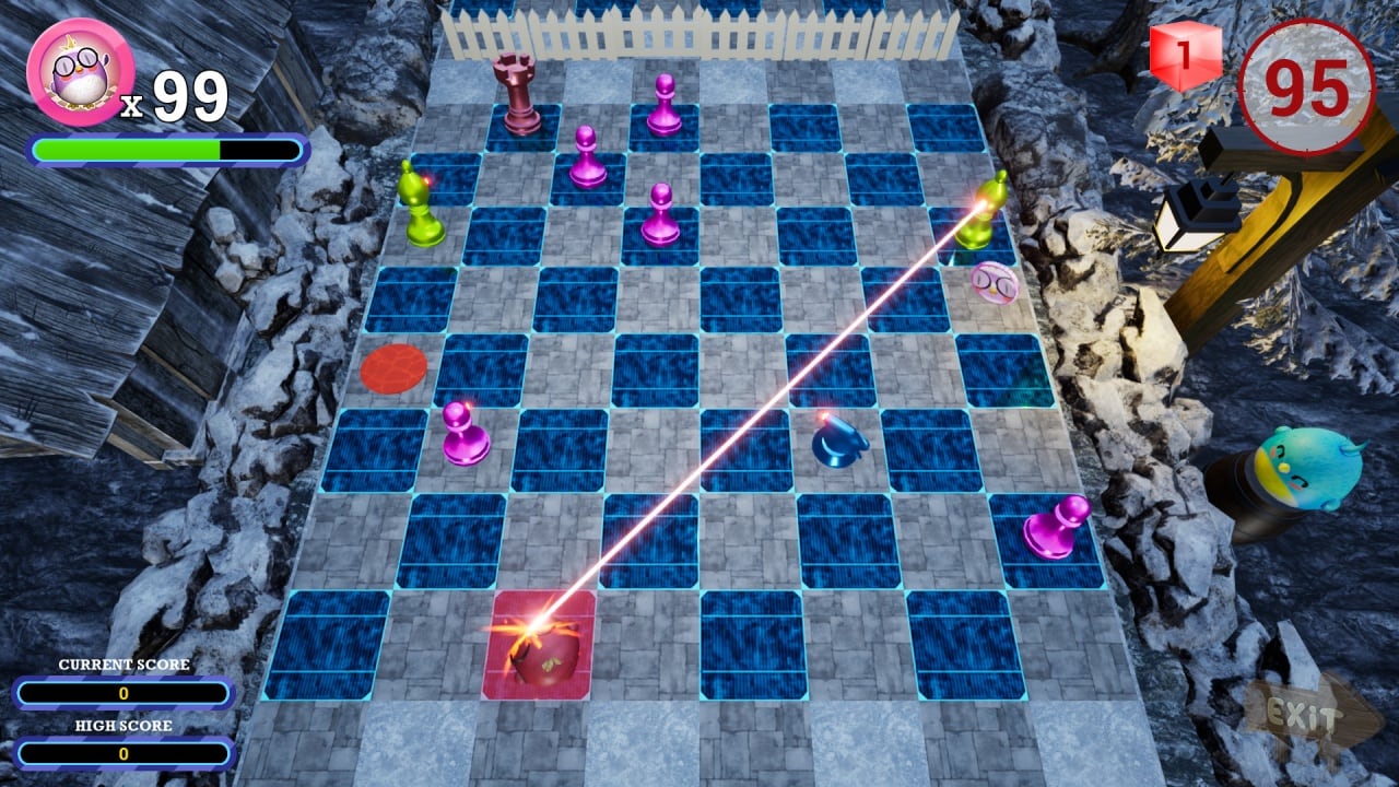 Цыпленок по имени Чесси нуждается в помощи, что пересечь шахматную доску в Chessie Chicken. Увлекательное учебное пособие, чтобы научиться играть в шахматы. Пользователь сможет хорошенько повысить свою осведомленность об этом виде увлечения. Главное избегать тех квадратов, которые могут быть атакованы при помощи фигурой, находящаяся на доске. Пользователю стоит придумывать свои тактики, чтобы занять победное место и стать самым крутым. Игра поможет геймеру стать настоящих шахматистом, который забудет, что такое промахи и будет знать только что такое первое место и слезы противника.