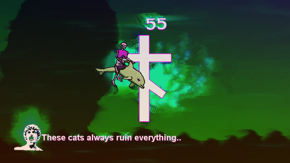В Skullnight все построено на психоделике. Будут странные герои, которые кажутся непонятными существами. Это скелеты, которые зачем-то дружат с дельфинами. Розоволосые девушки, у которых кожа под цвет их прически. Это аркадный хоррор с элементами забавного веселья. Потребуется участвовать в диалогах, а также общаться с персами, которые здесь находятся.
