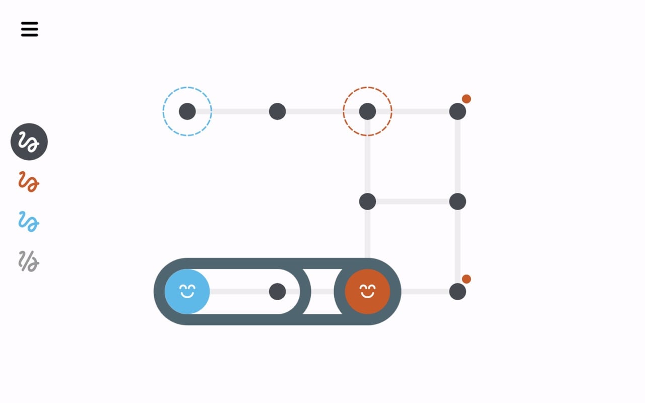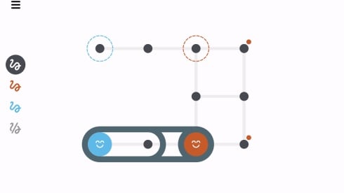 Все доступно более 60 уровней, и все эти места сделаны полностью вручную. Итак, есть своеобразная скрепка, у которой на конце разные цвета. С одной стороны, синий, с другой оранжевый. Есть на экране линии соответствующих цветов, а также 2 конечные точки. То есть, нужно чтобы концы скрепки встали на них. Но для этого двигаться надо только по подходящим оттенкам с двух сторон. В настройках можно включить темный режим, чтобы не травмировать глаза.