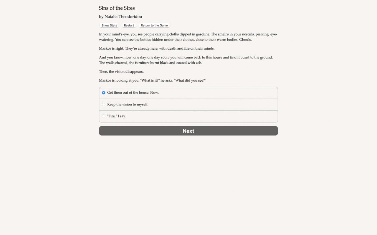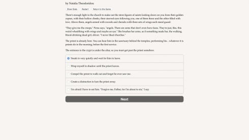 Vampire: The Masquerade - Sins of the Sires v Build 15551961 Новая версия Полная версия Последняя в альт. раздачах Дата выхода 24 мар. 2022 Разработчик Choice of Games Жанр RPG, Экшены, Приключения, Инди Смешанные на основе 136 обзоров в Steam 40% Обновлено 25 марта 2025, 17:43 Список изменений Vampire: The Masquerade - Sins of the Sires – классический текстовый квест, для прохождения которого геймеры по большей мере должны задействовать собственное воображение. В отличие от большинства представителей жанра здесь нет никакого музыкального и тем более визуального сопровождения. Все, что пользователи станут видеть на экране своего компьютера – так это бесконечный текст и диалоги. Всего прописано порядком 300 тысяч фраз, что делает эту фантастическую историю полноценным романом. Главным героем истории Vampire: The Masquerade - Sins of the Sires становится представитель древней расы вампиров. Действия разворачиваются в городе Афины, где на протяжении тысячелетий кровопийцы уживаются с людьми. Сейчас их осталось совсем немного, а потому они вынуждены прятаться за масками, иначе рискуют оказаться уничтоженными. Общество этих создания разделено на несколько кланов, включая Вентру, Тремер, Бану, слабокровных и Малкавиан. В рамках прохождения пользователь может примкнуть к любом из этих кланов. История отличается тем, что она развивается, исключительно подстраиваясь под решения, принятые протагонистом. Таким образом, здесь множество концовок и далеко не все из них положительные. Также можно выбрать одинокий путь. Все вращается вокруг новой цели вампиров – многие хотят навсегда изменить порядок вещей и выбраться из тени, подчинить человечество и стать для него богами. Скачать торрент Скриншоты Показать больше Видео из игры Скачать Vampire: The Masquerade - Sins of the Sires Тип релиза Пиратка Portable (Таблетка: Вшита) Версия v 24.03.2022 Размер 114 МБ Интерфейс Английский Озвучка Отсутствует Установка: Примечание Более актуальная версия: v Build 15551961находится в блоке - Альтернативные раздачи. Скачать .torrent торрент файл Скачать БЕЗ торрента прямая ссылка через uTorria Альтернативные раздачи Прямые ссылки Облачные хранилища v Build 15551961 50 МБ Показать Системные требования ОС: Windows 7, 8, 10 Процессор: Dual Core 2.0 GHz Оперативная память: 2 ГБ Видеокарта: Intel HD 3000 Место на диске: 115.4 ГБ Казуальная, Вампиры, Приключенческий экшен, Глубокий сюжет, Решения с последствиями, Драма, Несколько концовок, Тёмное фэнтези, Политический симулятор, Научная фантастика, Сверхъестественное