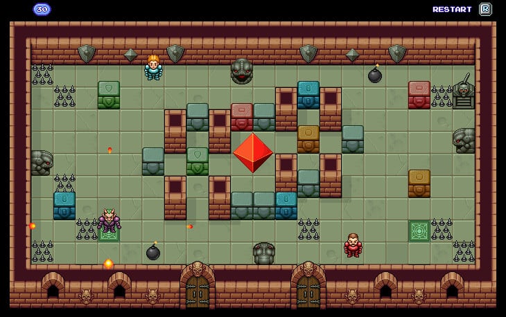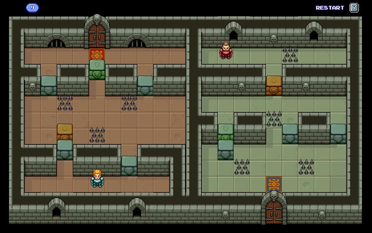 Dungeon Blocks представляет собой игру-головоломку. У этого проекта двухмерная графика в стиле-пиксель арт. Камера расположена сбоку. Визуальная и музыкальная составляющая стилизованы под ретро-игры. На фоне играет саундтрек в стиле чиптюн. Геймплей напоминает сокобан и другие подобные забавы. Нужно двигать ящики по клеткам, чтобы избегать ловушек и преодолевать препятствия. Блоки можно перемещать только вверх, вниз влево или вправо. С их помощью можно блокировать проджектайлы стреляющих статуй и расчищать путь. Кубы разрешают только толкать, а не тянуть на себя. Поэтому необходимо просчитывать свои действия наперед, чтобы не оказаться в тупике.