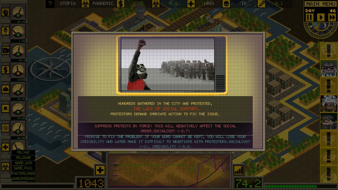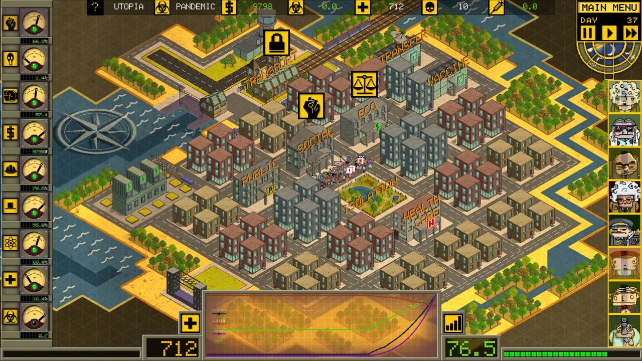 Ministry of Pandemic v 05.01.2022 Новая версия Полная версия Последняя Дата выхода 1 янв. 2022 Разработчик Ceyhan Kapusuz Жанр Инди, Стратегии, Симуляторы Обновлено 26 января 2025, 13:46 Список изменений Ministry of Pandemic – увлекательный симулятор выживания с элементами стратегии, сюжет которой как никогда актуален для современного общества. Все действия разворачиваются вокруг очередной вспышки опасной болезни, которая быстро распространяется по всей планете из-за чего начинается пандемия. Пользователь станет выступать руководителем организации, в обязанности входит контроль над распространением заболеваний и забота о мирных жителях, которые могут погибнуть если служба станет бездействовать.В рамках прохождения Ministry of Pandemic геймер обязан заниматься: контролировать течение болезни – необходимость поддерживать баланс между обществом, разработкой вакцины и экономикой; бороться со СМИ, которые пытаются заработать на фейковых новостях и панике населения; руководить поездками и торговлей, ведь при помощи этих путей вирус распространяется по огромной территории; модернизировать систему здравоохранения – строительство новых клиник, увеличение количества коек, выпуск нового оборудования; заниматься научными исследованиями и работать над вакциной; сдерживать настроение населения – не давать ему упасть в панику; отслеживать пациентов и при необходимости помещать их в специальные учреждения, чтобы они не разносили инфекцию. Стратегия потребует от геймера тщательного планирования действий. Один неверный шаг способен привести к катастрофическим последствиям и к триумфу инфекции. Пользователь обязан во всем соблюдать баланс – нельзя, к примеру напрочь уничтожать прессу или давать ей полную свободу действий, также не рекомендуется сильно ограничивать права землян, даже если этого требует ситуация, ведь оно способно пойти на бунты и протесты. Скачать торрент Скриншоты Показать больше Видео из игры Скачать Ministry of Pandemic Тип релиза Лицензия (Таблетка: Присутствует) Версия v 05.01.2022 (Полная) Последняя Размер 72.7 МБ Интерфейс Английский Озвучка Английская Установка: Скачать .torrent торрент файл Скачать БЕЗ торрента прямая ссылка через uTorria Системные требования ОС: 10 (32/64 bit) Процессор: 3 GHz Dual Core Оперативная память: 4 ГБ Видеокарта: GeForce GT 430 Место на диске: 200 МБ Политический симулятор, Тайм-менеджмент, Пошаговые стратегии, Тактика в реальном времени, Образование, Песочница, Обучение, Градостроение, Симулятор жизни, Пошаговая тактика, Менеджмент, Наука, Экономика