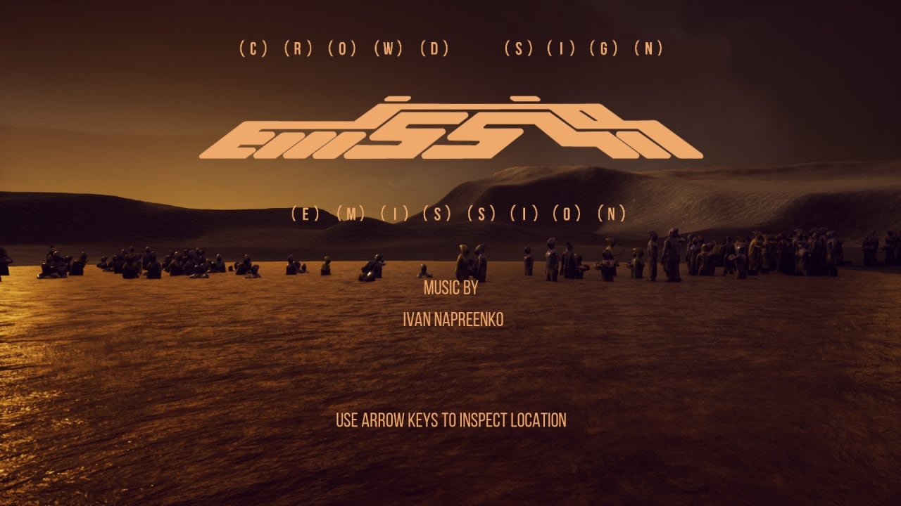 Crowd Sign: Emission повествует про загадочный и сюрреалистичный мир, где пользователям приходится заниматься рисованием символов и различных знаков, чтобы решать головоломки и изучать окружающую среду. Проект является интерактивным квестом с элементами визуальной новеллы, где игрокам приходится бродить по карте от первого лица и взаимодействовать с предметами и различными трехмерными объектами. Сюжетная линия будет развиваться постепенно и полноценно зависеть от действий геймеров. Выйдет получить одну из нелинейных концовок и насладиться поставленными кат-сценами.