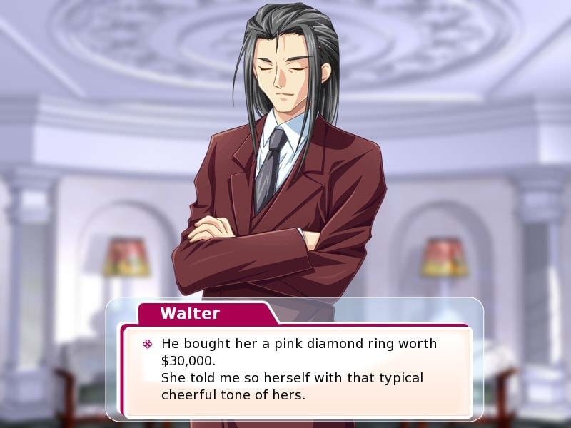 Похищенное кольцо с бриллиантом RUS Полная версия Последняя Дата выхода 2009 Разработчик Nekomura Games Жанр Аниме, Визуальная новелла Обновлено 26 января 2025, 13:41 Список изменений В новелле Похищенное кольцо с бриллиантом игрок побывает в роли Кэтрин, молодой девушки, в жизни которой случилось необычное приключение. Оно начинается с того, как давняя и хорошая приятельница приглашает ее в гости из-за собственной помолвки. Гости веселятся и развлекаются, поздравляя хозяйку особняка. Неожиданно девушка сообщает, что ее обручальное кольцо исчезло, хотя недавно находилось рядом с ней. Каждый гость, прислуга и даже сама хозяйка с женихом оказываются в роли подозреваемых. Возможно, кто-то желает зла любящей паре, либо это розыгрыш. Как бы это ни было, пользователю предстоит исследовать окружение и общаться с персонажами, постепенно собирая информацию и улики. Найденные сведения помогут решить загадку и узнать, куда делось обручальное кольцо. Игровой процесс длится от 2 до 10 часов реального времени в зависимости от того, какие решения предпримет геймер. Кэтрин пытается спасти свою репутацию доброжелателя и хорошего друга. Она не брала в руки обручальное кольцо и всеми силами поможет своего подруге отыскать его. Разговаривая с разнообразными людьми, юзер постепенно получает ценные сведения и может заметить какие-либо улики, находящиеся во внешнем виде собеседника, на одежде или в карманах. Рассматривая NPC или исследуя окружающие локации, откроется доступ к многочисленным уликам или указателям. Скачать торрент Скриншоты Видео из игры Скачать Похищенное кольцо с бриллиантом Тип релиза Пиратка (Таблетка: Не требуется) Версия (Полная) Последняя Размер 32.9 МБ Интерфейс Русский Озвучка Отсутствует Скачать .torrent торрент файл Скачать БЕЗ торрента прямая ссылка через uTorria Системные требования ОС: 2000 / XP / Vista / 7 / 8 / 10 Процессор: 1 GHz Оперативная память: 256 МБ Решения с последствиями