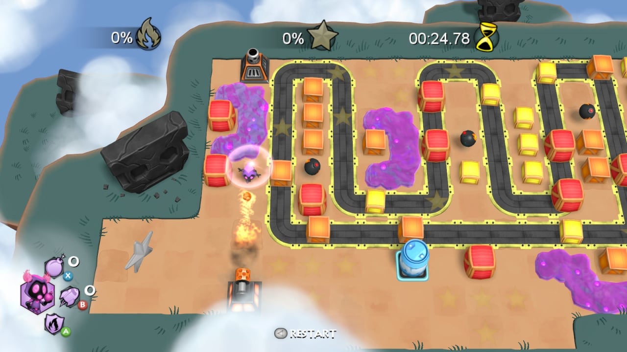 В процессе прохождения, игрокам предстоит создавать цепные реакции из взрывов, чтобы наносить колоссальный урон по площади. Пользователям нужно уничтожить корпорацию "Зло Evil Inc.", применяя для этого одного из 4-х доступных персонажей. Выйдет посетить 3 тематических биома, что будут отличаться между собой визуально. Также придется сойтись в битве против Токсо, что выступает в качестве босса. В проекте присутствует множество секретов и бонусных заданий, которые приходится находить геймерам при продвижении по сюжетной линии.