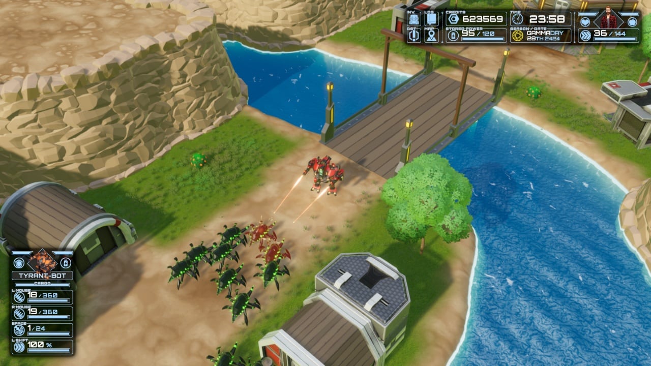 В Mech Farmer главный герой – это человек, управляющий огромным роботом. Меха используется для того, чтобы уничтожать тварей, которые лезут со всех щелей и хотят убить людей. Ходят слухи, что это как раз-таки из-за того, что здесь происходит добыча. Но говорить это работникам лучше не стоит, по той простой причине, что они будут устраивать бунты. А это точно не нужно. Итак, главный герой будет отстреливать всех недоброжелателей, и параллельно развивать колониальную территорию.