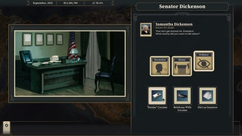 This Is the President RUS v Update 3 Новая версия Полная версия Последняя в альт. раздачах Дата выхода 6 дек. 2021 Разработчик SuperPAC Жанр Приключения, Стратегии, Визуальная новелла, Симуляторы Смешанные на основе 354 обзоров в Steam 68% Обновлено 26 января 2025, 12:55 Список изменений В политическом триллере This Is the President игрок становится новым лидером, обладающим сомнительным прошлым, влияющим на дальнейшую судьбу карьеры. Основная задача главного героя – не заработать расплату за содеянные преступления, даже если из-за этого в стране будет происходить полнейший хаос. Игровой процесс сочетает элементы управления страной и глубокий сюжет, зависящий от решений и предпринятых действий. Действие происходит в 2020 году, а центральный персонаж становится новоиспеченным президентом США, на которого полагается огромная ответственность в ближайшие годы. Ранее протагонист совершал незаконные денежные обращения, а, чтобы избежать возможного наказания, потребуется изменить 28-ю поправку, что даст президенту неприкосновенность до конца жизни. В прохождении геймеру предстоит управлять рабочими и теневыми помощниками, будучи истинным мафиози. Чтобы ратифицировать поправку, требуется заработать доверие со стороны жителей. Для этого потребуется изменить некоторые законы и предпринять решения, влияющие на жизнь горожан в лучшую сторону. Поднимая рейтинг, открывается больше президентских возможностей. В прохождении юзер будет взаимодействовать с журналистами, адвокатами, хакерами, громилами и другими людьми, чтобы достигать поставленных целей. Скачать торрент Скриншоты Показать больше Видео из игры Скачать This Is the President Тип релиза RePack от FitGirl Версия v 1.0c Размер 1.61 ГБ Интерфейс Русский Озвучка Английская Особенности репака: Примечание Более актуальная версия: v Update 3находится в блоке - Альтернативные раздачи. Скачать .torrent торрент файл Скачать БЕЗ торрента прямая ссылка через uTorria Альтернативные раздачи Торренты Лицензия GOG (Таблетка: Не требуется) v 1.0c 2.1 ГБ Скачать Пиратка (Таблетка: Присутствует) v Update 3 1.98 ГБ Скачать Прямые ссылки GOG версия (Без DRM) v 1.0c 2.102 ГБ Показать Системные требования ОС: Windows 7, 8, 10 Процессор: AMD / Intel CPU running at 2.6 GHz Оперативная память: 4 ГБ Видеокарта: NVIDIA/AMD 1GB VRAM Место на диске: 6 ГБ Глобальные стратегии, Пошаговые стратегии, Политический симулятор, Ролевые стратегии, Пошаговая тактика, Игры в 2D, Америка, Чёрный юмор, Драма, Антиутопия, Криминал, Менеджмент