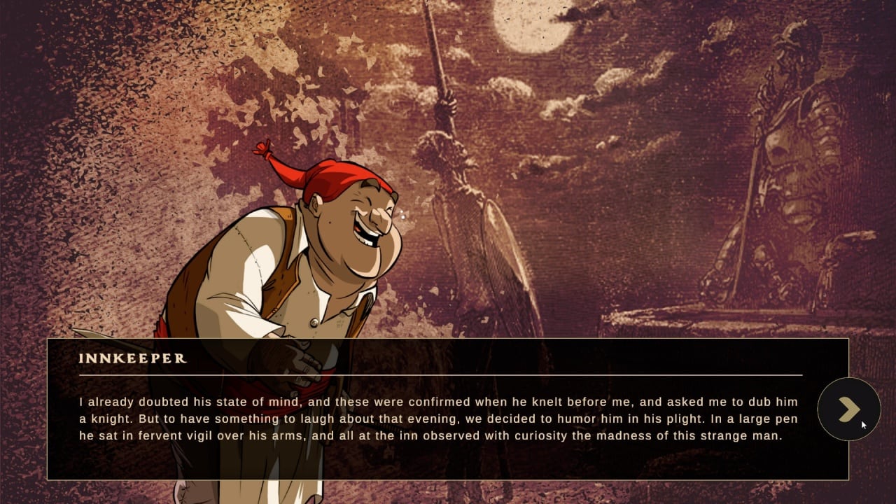 QUIJOTE: Quest for Glory v Build 8522869 Новая версия Ранний Доступ Последняя версия Дата выхода 31 мар. 2022 Разработчик Cubus Games Жанр Стратегии, Инди Положительные на основе 10 обзоров в Steam 100% Обновлено 26 января 2025, 15:08 Список изменений QUIJOTE: Quest for Glory основана на истории Сервантеса о приключения Дон Кихота. Только если автор демонстрировал все с комической и реальной стороны, где великаны оказались мельницами, разработчик предлагает взглянуть на эти приключения глазами протагониста. Здесь полно эпических сражений, мощных походов против толп противников и кровопролитных войн. Главный герой один из тех, кто до безумия любит рыцарскую тематику и при этом живет в средневековье. К сожалению, чтобы стать настоящим воином необходимо пройти длительное обучение и быть достаточно богатым для приобретения всего необходимого снаряжения, чем мужчина точно не обладал. Но читать книги о подвигах из библиотеки ему никто не запрещал и он занимался этим целые сутки напролет. Такое помешательство привело к тому, что протагонист окончательно сошел с ума и теперь поддается мощным фантазиям воспаленного мозга. Ему кажется, будто он смог стать настоящим рыцарем и теперь ему уготовано отправиться в длительное приключение по очищению мира от тьмы. Игровой процесс QUIJOTE: Quest for Glory довольно простой и состоит из пошаговых карточных боев. Исследуя локации, пользователь может наткнуться на монстров, которых необходимо победить с помощью различных способностей. Периодически за выполненные мисси, игрок будет получать отрывки из оригинального романа, чтобы сверить их с произошедшим и раскрыть тайну ужасных чудищ. Скачать торрент Скриншоты Показать больше Видео из игры Скачать QUIJOTE: Quest for Glory Ранний доступ Тип релиза Пиратка (Таблетка: Не требуется) Версия v Build 8522869 (Полная) Последняя Размер 327 МБ Интерфейс Английский Озвучка Испанский Установка: Скачать .torrent торрент файл Скачать БЕЗ торрента прямая ссылка через uTorria Системные требования ОС: Windows 7, 8, 10, 11 (64 бита) Процессор: 1.4 Ghz Оперативная память: 2 ГБ Видеокарта: OpenGl 2.1 Место на диске: 500 МБ Пошаговая тактика, Карточная игра, Фэнтези, Средневековье, Пошаговые стратегии, Повествовательная, Построение колоды, Игры в 2D, Пошаговые сражения, Тактика, Мультфильмы, Бой, Перемещение по сетке