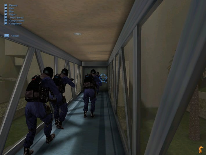 Команда делится на несколько "цветных" групп по два человека - красная и синяя. Поодиночке бойцы никогда не ходят, поэтому разведывать местность всегда отправляется два человека, чтобы прикрывать друг друга. Также это деление дает множество стратегий в плане штурма, когда одно помещение можно оцепить с двух сторон и застать террористов врасплох.
