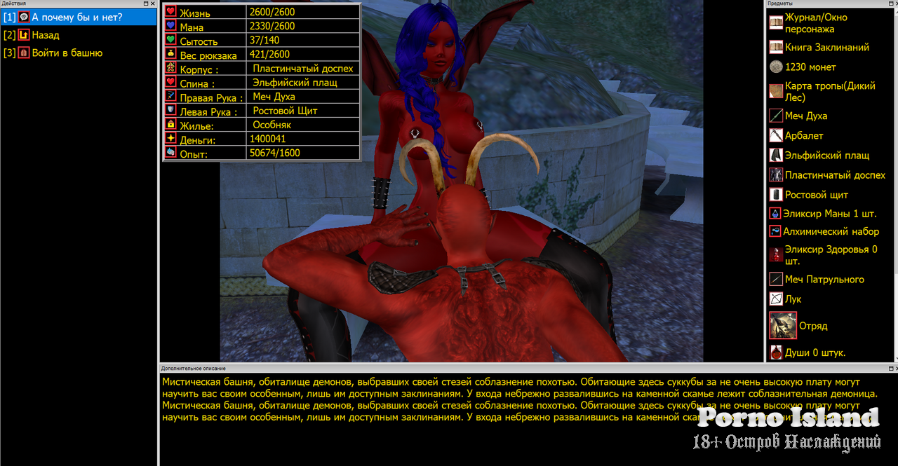 В процессе прохождения, юзеров ожидает множество пикантных ситуаций и встречи с горячими девушками-монстрами. Приходится соблазнять девчонок, а также применять особые способности демона-охотника. Выйдет повстречать на своем пути разнообразных существ женского пола, с которыми можно вступать в половые контакты и получать удовлетворение от приятного времяпрепровождения. Пользователи будут наблюдать за постельными кат-сценами, где можно менять ракурс и совершать понравившиеся действия.