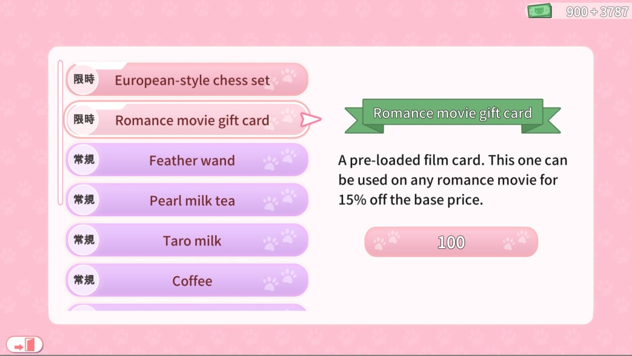В поисках своей настоящей любви протагонистка Cat's Kiss обязана завести отношения с множеством неигровых персонажей и развивать с ними связь посредством диалогов. Как классический представитель своего жанра, роман лишен возможности исследования виртуального мира – геймплей сконцентрирован исключительно на бесконечных диалогах. По традиции все они прописаны до мельчайших деталей, история интересна и имеет множество неожиданных поворотов.