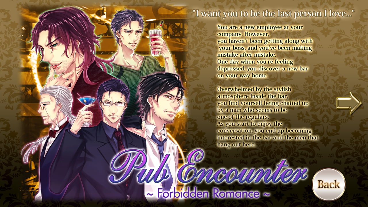 Pub Encounter Полная версия Последняя Дата выхода 12 апр. 2016 Разработчик Dogenzaka Lab Жанр Приключения, Визуальная новелла, Аниме Очень положительные на основе 281 обзоров в Steam 83% Обновлено 26 января 2025, 13:19 Список изменений Pub Encounter – это визуальная новелла в духе симулятор свиданий для игроков которые любят персонажей постарше. Все мужчины здесь уже довольно опытные и прошли достаточный жизненный путь, чтобы полностью сформировать свою личность. Здесь все сосредоточено именно на романтике с выбранным партнером и развитии отношений с ним. Главная героиня после длительного и тяжелого дня решила немного изменить типичный маршрут своего похода домой и пойти более длинной дорогой. Она не знала куда она ведет или кто встретиться ей по пути. Но взгляд ее привлек довольно яркая вывеска единственного работающего заведения в столь позднее время. Снедаемая любопытством и желание выпить алкоголь заставило ее изменить планы и зайти внутрь. Компания там оказалась довольно приятная, работники разных компаний, которые относительно поздно возвращались домой, и весело проводили время в компании. Главные герои Паб Енкоунтер: Юзе Рюноске – невероятно серьезно относится к своим обязанностям, из-за некоторых проблем в прошлом осторожно и с опаской относится к женщинам, потому растопить его сердце будет трудно Арарширо – оптимист, который всегда находится в приподнятом настроении, но его хитрый взгляд заставляет быть немного осторожным, очень пробивной и готов добиваться всего любой ценой Кодама – сердцеед, активный и немного взбалмошный, если рядом есть прекрасная дама, то он наверняка окажется рядом с ней и заведет разговор, отличается хитростью Ходо – не любит болтать без дела, относительно мягкий молодой человек, расценивающий жизнь как игру, в которой непременно всегда стоит оставаться лидером Соиторо – человек спокойствие, который предпочитает слушать и никогда не перебивает, с виду является типичным безучастным наблюдателям, но его стоит узнать получше Каждый из мужчин обладает своей уникальной историей и особенностями характера. Сначала они могут казаться слишком холодными или мужественными, но стоит сходить с ними на пару свиданий, как они откроют свою чувственную сторону. Постепенно выбранный любовный интерес будет проявлять больше внимания к героине и втягивать в личностные проблемы. Скачать торрент Скриншоты Показать больше Видео из игры Скачать Pub Encounter Тип релиза Пиратка (Таблетка: Вшита) Версия (Полная) Последняя Размер 421.9 МБ Интерфейс Английский Озвучка Отсутствует Установка: Скачать .torrent торрент файл Скачать БЕЗ торрента прямая ссылка через uTorria Системные требования ОС: Windows XP, 7, 8, 10 Процессор: Intel Pentium IV 1,8GHz Оперативная память: 1 ГБ Видеокарта: Direct X9 compatible Место на диске: 500 МБ Протагонистка