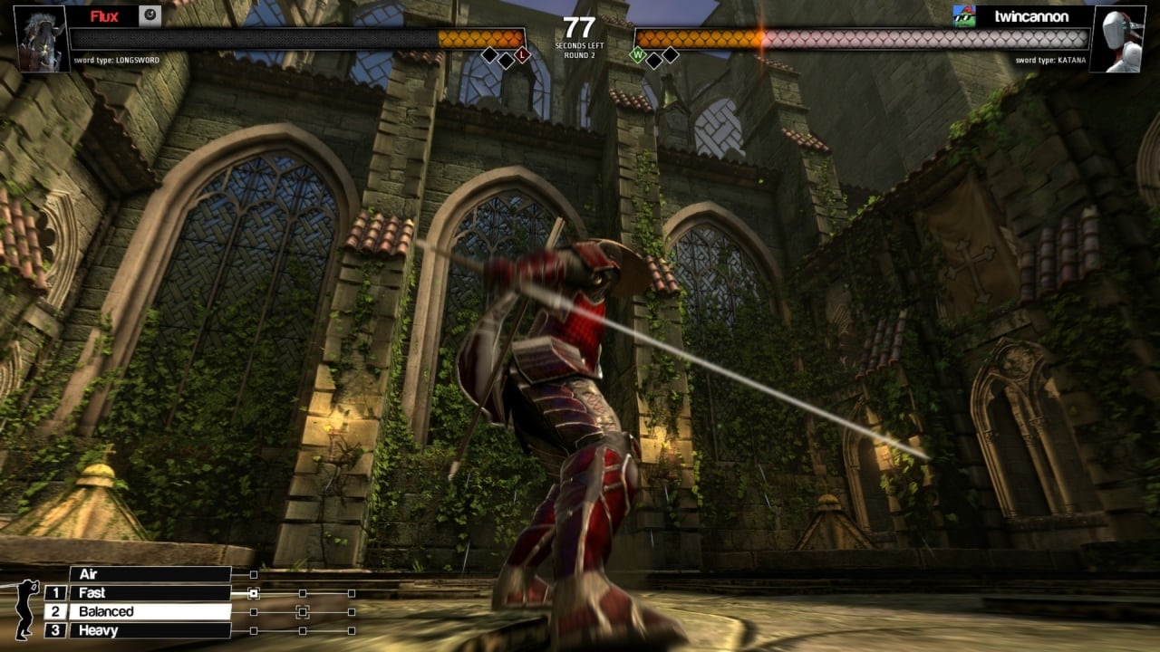 Каждое движение клинка просчитывается в трёхмерном пространстве. Игрокам доступно 4 стойки: легкая, сбалансированная, сильная и с воздуха. Дуэли здесь представляют напряженную психологическую войну, где победителем оказывается игрок, обладающий быстрейшей реакцией и сумевший удачно провести серию атак. Гибкая боевая система дает возможности для исследования самой эффективной комбинации.