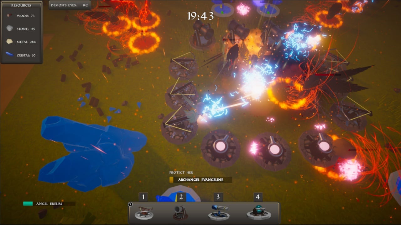 Evangeline's Defense – стратегическая видеоигра с элементами защиты башен, в рамках прохождения которой геймер становится могущественным посланником небес. Ангельская леди Эрелим пребывает на Землю вместе со своей спутницей – Архангелом Эванджелин, которая обязана при помощи своей магии закрыть порталы. Через них в мир людей проникают огромные орды демонов, способные уничтожить все живое. Пока Архангел проводит ритуалы закрытия этих кротовых нор протагонисту предстоит защищать ее.