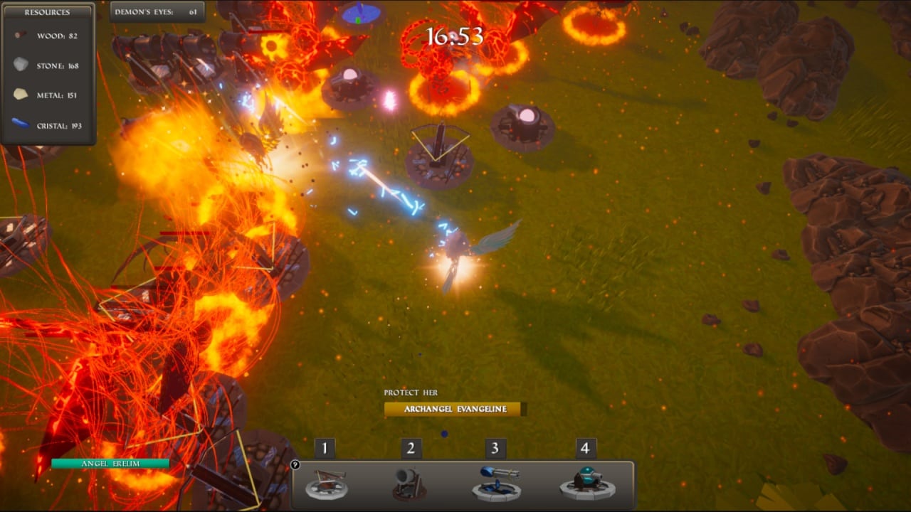 Уничтожать врагов можно при помощи нескольких видов башен, которые ведут огонь в автоматическом режиме. Для их строительства необходимы материалы – их можно добыть из окружающей среды. Например, доски следует заполучить из растущих рядом деревьев, а камень – из валунов. Также атаковать созданий из преисподней способна и сама Эрелим – она свободно перемещается по полю боя и наносит существенный урон. По ходу прохождения также доступна прокачка как башен, так и главной героини.