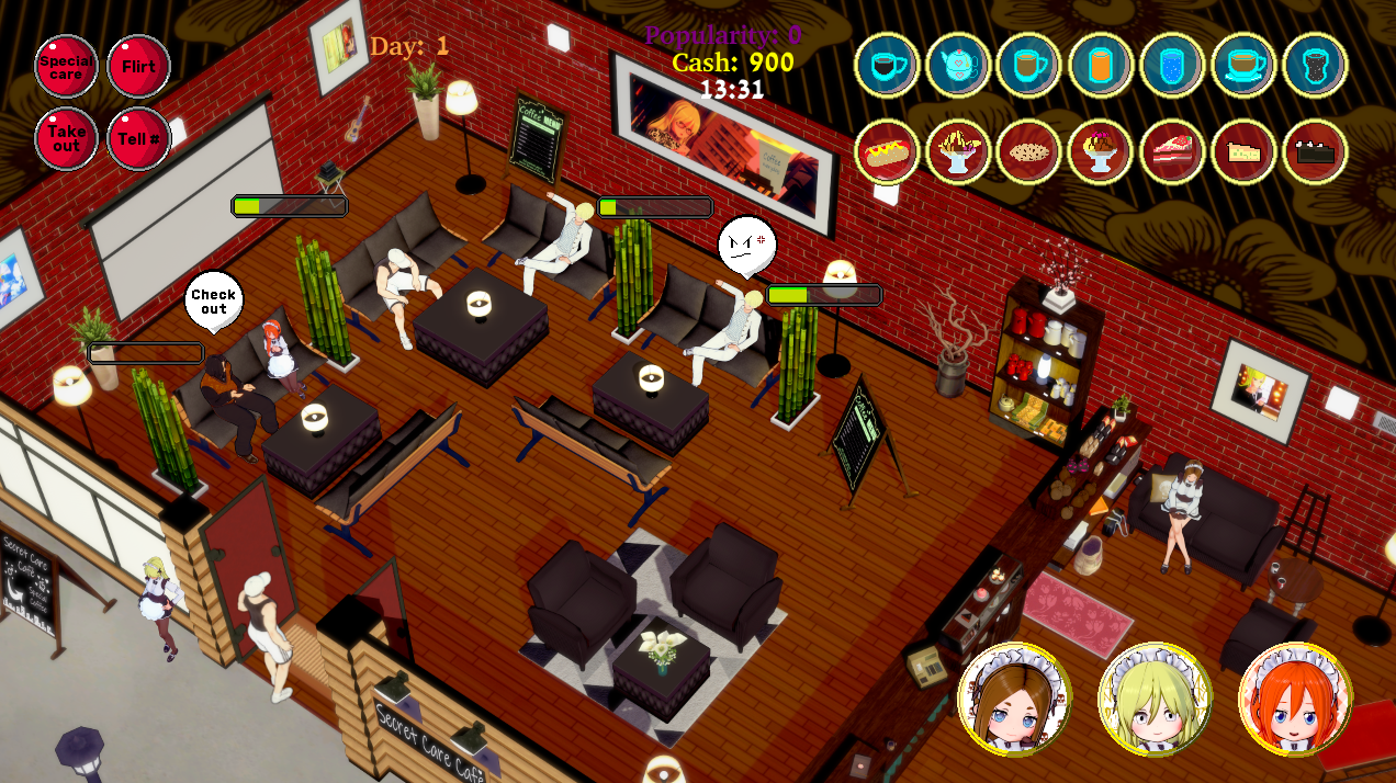 Приключение представлено стандартными механиками, характерными для новелл. Необходимо говорить со всеми доступными героями. Все персонажи имеют свою биографию и разнятся не только внешностью, но и характерами. Каждый клиент - особенный с индивидуальными предпочтениями и вкусом. В связи с этим все постельные сцены в игре абсолютно разные и никогда не повторяются. Необходимо обслуживать клиентов по полной программе. Больше, толще, глубже - это стандартная просьба и практика, которая не удивляет ни гостей секретного кафе, ни его работников. Выборы влияют на развитие сюжета и на самих персонажей. Потребуется пройти игру несколько раз, чтобы увидеть весь доступный контент.
