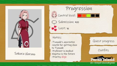 Задачи и цели очень просты - соблазнить всех девочек в округе. Населенный пункт славится невероятными красотками. Все девочки открыты для секса, если приложить хотя бы минимальные усилия. Для того чтобы переспать с наруто-красоткой, требуется выбрать соответствующую диалоговую строчку. Однако для этого еще требуется как минимум поговорить с барышней - она же приличная женщина. Поступки героя Jikage Rising влияют на развитие сюжета. История представляет собой фанфик, отсылающий к основным событиям мультсериала. В сюжете фигурирует таинственный помощник. Он преследует свои неизвестные цели и постоянно фигурирует на фоне, мешая герою возродить собственный клан. Все персонажи в игре выделяются харизмой и запоминаются. Особенно тяжело забыть местных красоток.