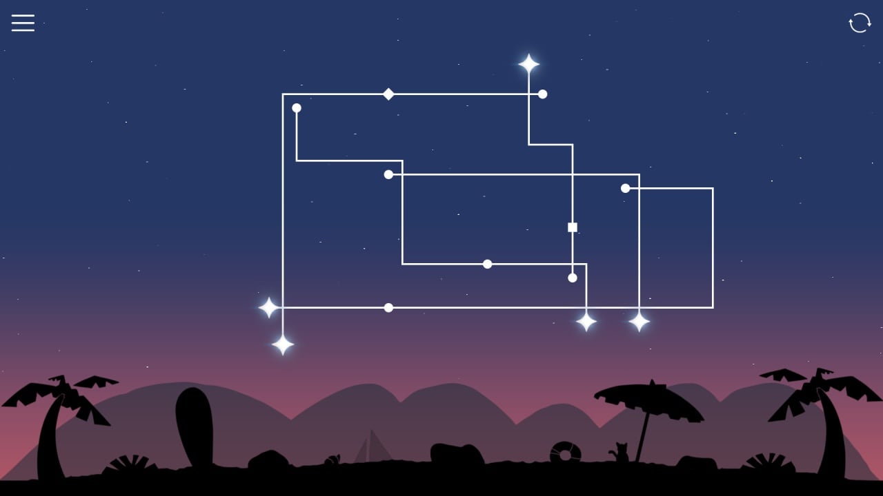 Уровни представлены пляжем, различными укромными и тихими местами. Все фоны - динамические. На экране никогда не происходит одинаковое и монотонное действие. Управление крайне интуитивное и простое. Необходимо нажимать на звезду и перемещать в правильное положение, создавая таким образом цепочку из созвездий. Постепенно на экране формируется определенная уникальная фигура из горящих звездочек. Интерфейс минималистичен и не перегружен лишними деталями.