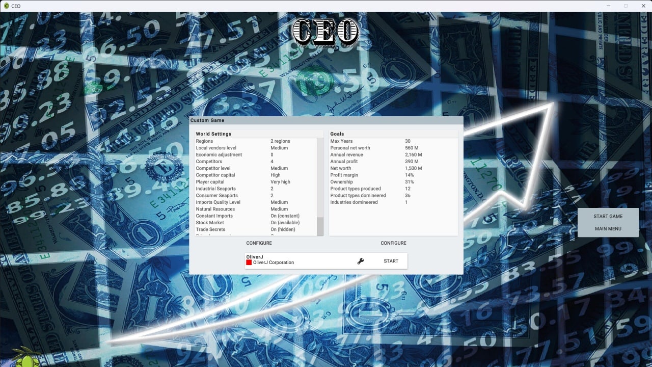 CEO является изометрической экономической стратегией и бизнес-симулятором. Она дает возможность пользователям посидеть в виртуальном кресле гендиректора многонационального конгломерата. В игре есть режим песочницы и набор сценариев с таблицей лидеров. Можно играть в одиночку или с конкурентами. Ими могут быть живые игроки или боты. Мультиплеер поддерживает одновременное участие максимум 6 человек. Мир состоит из несколько регионов. Они реагируют на действия геймеров. Им позволяют участвовать в аукционах, изучать новые технологии, нанимать и обучать сотрудников, инвестировать в рекламу и узнаваемость бренда, продумывать цепочки поставок, следить за спросом и предложением, выкупать акции, регулировать цены и качество продукции.