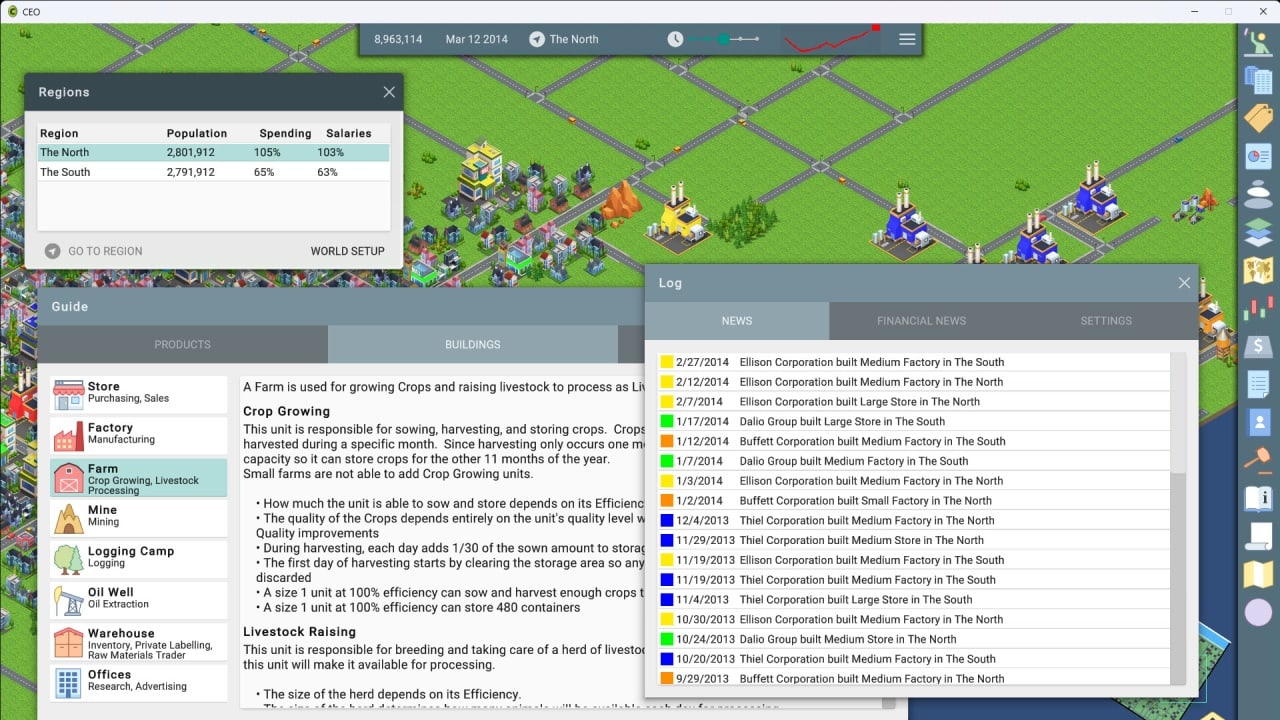 На русский язык название игры переводится как Исполнительный директор. Её можно назвать духовным наследником Capitalism 2. Главные отличия от культового тайкуна заключаются в более современной графике, большем количестве продуктов (тут их 75 разновидностей) и более сложных производственных цепочках. Из особенностей можно выделить комплексное моделирование бизнес-среды. В этой видеоигре можно выращивать овощи и фрукты, собирать хлопок, добывать железо, создавать материалы, перерабатывать сырье, производить различные товары – от апельсинового сока до автомобилей. Юзер может строить фермы, шахты, лесопилки, нефтяные скважины, заводы, научно-исследовательские лаборатории.