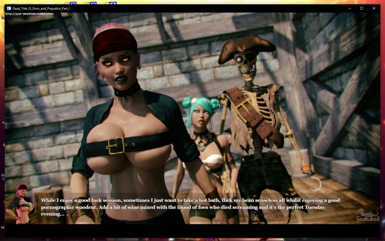 История Dead Tide IX: Porn and Prejudice полна динамических сцен и эпизодов с морскими сражениями, абордажем других суден и исследованием опасных островов. Пользователь также будет искать древние сокровища и встречать массу интересных персонажей, с каждым из которых можно вступить в романтические отношения, а затем при правильной череде действий и в интимную связь. Все персы слабого пола выглядят словно с обложки самого крутого мужского журнала для взрослых.