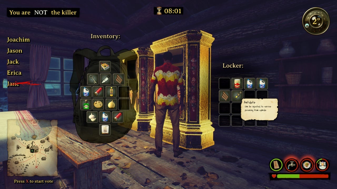 Killer in the cabin v 1.0 Новая версия Полная версия Последняя Дата выхода 12 мая. 2022 Разработчик Games People Play Жанр Выживание, Экшены, Приключения, Стратегии Положительные на основе 43 обзоров в Steam 81% Обновлено 26 января 2025, 16:17 Список изменений Killer in the cabin сочетает в себе экшен, адвенчуру и симулятор выживания. Это многопользовательская игра на социальную дедукцию. В ней, как и в других подобных тайтлах, геймплей сосредоточен вокруг поиска предателя. По сюжету группа людей попадает в автокатастрофу. Путешественники посылают запрос о помощи, однако спасение прибудет только через несколько дней. Им необходимо продержаться весь этот период и постараться не умереть на заснеженных горах Норвегии. До прибытия подмоги придется найти убежище, а также отыскать источник тепла, воду и пищу. Однако опасность для выживших представляет не только суровый и холодный климат, но и наличие среди них убийцы. Убийца в хижине – это исключительно многопользовательский проект, требующий наличия микрофона. Матчи в нем рассчитаны на 8 участников. В среднем они длятся не более 15 минут. В отличие от других социальных видеоигр, здесь можно запускать голосование в любой момент, а не ждать появления специальных условий для этого. На голосованиях игроки по традиции решают, кто может оказаться предателем. Все споры проводятся в голосовом чате. Если больше половины геймеров выражают согласие, то конкретный персонаж умирает. Одному из игроков, что получает роль киллера, необходимо не попасться и успеть всех перебить для победы. Для этого можно устраивать диверсии, отравлять еду, душить своих спящих жертв. Скачать торрент Скриншоты Показать больше Видео из игры Скачать Killer in the cabin Тип релиза Пиратка (Таблетка: Не требуется) Версия v 1.0 (Полная) Последняя Размер 5.35 ГБ Интерфейс Английский Озвучка Английская Установка: Скачать .torrent торрент файл Скачать БЕЗ торрента прямая ссылка через uTorria Системные требования ОС: Windows 10 (64-bit) Процессор: Intel i5 4670k Оперативная память: 4 ГБ Видеокарта: nVidia GeForce GTX 770 Место на диске: 12 ГБ Приключенческий экшен, Исследования, От третьего лица, Цветастая, Психологическая, Криминал, Расследования