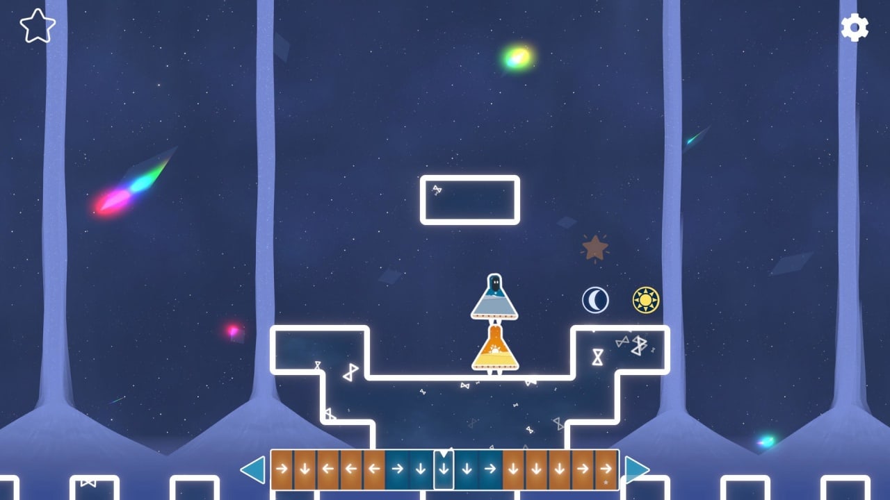 Meet me at NooN – это двухмерная игра-головоломка с элементами платформера и видом сбоку. У проекта низкий порог вхождения, уютная атмосфера и расслабляющий геймплей. В нём нельзя проиграть по-настоящему. Видеоигра не подгоняет геймеров и не наказывает их за ошибки. Если пользователи делают что-то не так, то здесь им позволяют возвращаться в прошлое и исправлять свои неудачные решения. По сюжету великие песочные часы разбились и разделились на двух духов. В результате появился новые континуум и два близнеца, олицетворяющих собой день и ночь. Каждый из них регулярно создает новые временные петли, с которыми и предстоит разбираться юзерам.