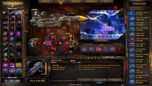 Все, что необходимо делать по ходу прохождения игры Движки-и-Пушки – это стрелять в бесконечные орды противника в каждом уровне. За победу в эпизоде добываются очки и деньги, которые можно потратить на улучшение корабля – это основная механика и именно от нее строится геймплей. Постепенно прокачивая судно, можно разместить на нем огромное количество стволов разного калибра. Но нужно быть внимательным, ведь они перегреваются, а потому бесконечно палить во все стороны не выйдет. Также стоит позаботиться о покупке оборудования, вроде энергетических щитов, системы охлаждения, двигателей, брони и крыльев.