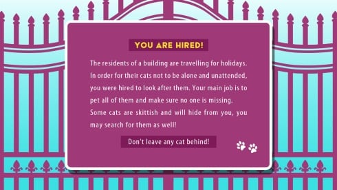 - Действие происходит в многоэтажном здании с разнообразными комнатами и местами, где спрятались питомцы.