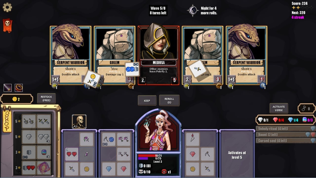 Можно улучшать персонажей и реликвии. Есть множество модификаторов, усиливающие карты. Доступны главные и второстепенные квесты. Локации, расположение врагов и реликвий генерируются случайным методом. Всего можно собрать более 60 различных реликвий. Можно пройти ряд испытаний, бросающих вызов навыков и стратегическим возможностям. Есть усложненный режим для настоящих искателей приключений.
