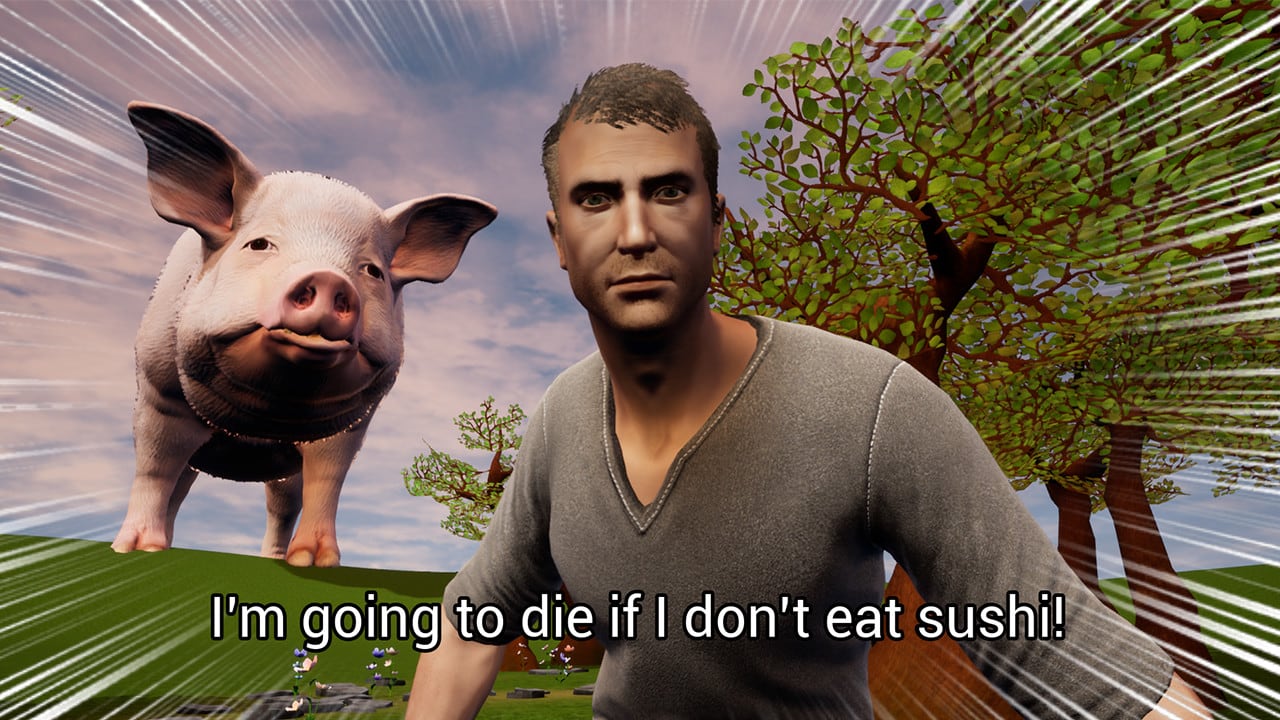 I’m going to die if I don’t eat sushi! – очень забавная и порой даже абсурдная адвенчура, главным героем которой становится взрослый мужчина со специфическими вкусами в кулинарии. Все привыкли, что именно женщины обожают такое азиатское блюдо как суши, однако протагонист попросту не может без них жить – он готов употреблять это чудо из далекой восточной Японии целыми сутками. Он любит буквально все – от лосося и тунца и заканчивая угрем и морским гребешком.