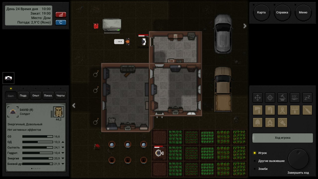 Terminus: Zombie Survivors RUS v Build 20219421 Новая версия Полная версия Последняя в альт. раздачах Дата выхода 19 авг. 2024 Разработчик Ingeon Games Жанр Выживание, RPG, Стратегии, Приключения, Инди, Симуляторы Очень положительные на основе 4235 обзоров в Steam 94% Обновлено 11 марта 2025, 20:35 Список изменений В пошаговой игре Terminus: Zombie Survivors предстоит выживать в разгар зомби-апокалипсиса. Главный герой случайно узнал о Терминусе — месте, где проживают другие выжившие. Ему необходимо добраться в убежище, сражаясь с обращенными и не забывая о важных ресурсах. На пути будут встречаться другие люди — они способны помочь и указать путь, но иногда могут оказаться злейшими врагами. Важно искать компаньонов, помогать друг другу, переживать холод и голод ради выживания в экстремальных условиях. В Terminus: Zombie Survivors нужно делать продуманные ходы, передвигаясь по разным локациям. Атаковать также стоит внимательно — иногда противники могут быть непредсказуемо сильными и опасными. Перед началом предстоит выбрать профессию и определить особые навыки: они помогут в выживании и сражениях. Локации и карты создаются случайным образом: даже после повторного прохождения процесс будет оставаться увлекательным. Требуется искать и подбирать нужные предметы, чтобы не умереть от голода или нападения зомби. Предметы для выживания: Еда и вода — важно следить за балансом и оставлять еду в запасе. Лекарства — пополняют здоровье после сражений или укусов существ. Одежда — дополнительно защищает от холода и нападений. Инструменты — позволяют создавать новые предметы или оружие. Оружие — необходимо для истребления зомби и самозащиты. Электроника — позволяет поддерживать связь с внешним миром и узнавать новости. Скачать торрент Скриншоты Показать больше Видео из игры Скачать Terminus: Zombie Survivors Тип релиза RePack от FitGirl Версия v 1.2.0.108 - Complete Edition Размер 512.89 МБ Интерфейс Русский Озвучка Отсутствует Особенности репака: Примечание Более актуальная версия: v Build 20219421находится в блоке - Альтернативные раздачи. Скачать .torrent торрент файл Скачать БЕЗ торрента прямая ссылка через uTorria Альтернативные раздачи Торренты Пиратка Portable (Таблетка: Вшита) v Build 20566448 + DLC 644.3 МБ Скачать Прямые ссылки Облачные хранилища v Build 20219421 250 МБ Показать Системные требования ОС: Windows 7, 8, 10 (64 бита) Процессор: 2.5 GHz Оперативная память: 2 ГБ Видеокарта: GeForce 6600 GT / Ati Radeon 9800XT Место на диске: 1.5 ГБ Зомби, Рогалик, Пошаговые стратегии, Открытый мир, Песочница, Пиксельная графика, Исследования, Крафтинг, Хорроры, Постапокалипсис, Пошаговая, Пошаговые сражения, Игры с геймпадом