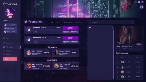 OnlyFap Simulator 2 содержит в себе сцены с демонстрацией секса и фетишей без цензуры. Из-за этого проект обладает возрастными ограничениями. Сам тайтл представляет собой кликер с элементами менеджмента. Также его можно назвать симулятором вебкам-модели. Как понятно по названию видеоигры, она пародирует популярную социальную есть из реальной жизни. По сюжету молодая женщина купила камеру, зарегистрировала аккаунт и начала вести стримы с демонстрацией своего обнаженного тела для платных подписчиков. Задача игрока: раскручивать её профиль в интернете, чтобы добиться роста числа донатеров и помочь даме максимально увеличить прибыль. У этой игры небольшая продолжительность. При желании её можно полностью пройти за один час.