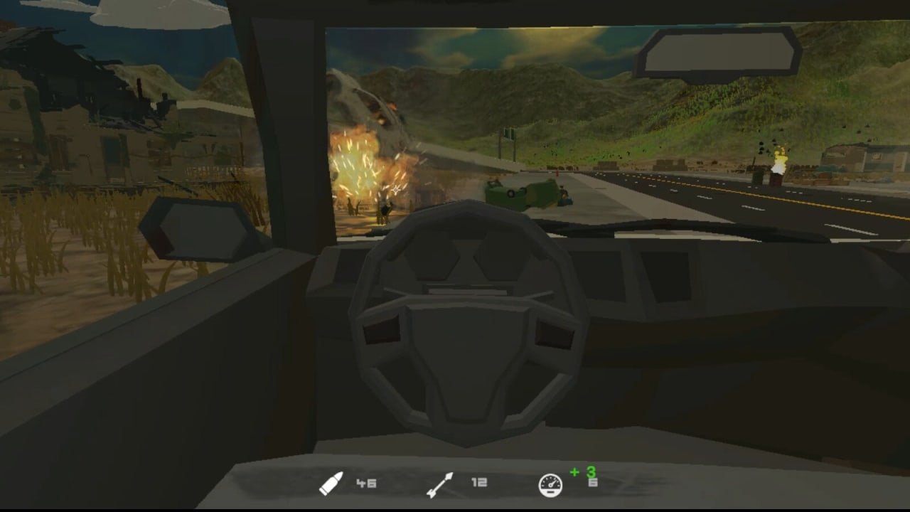 Roadkill – это гонки на выживание с элементами шутера. Это многопользовательский инди-проект, однако в него можно играть и в одиночку против ботов. В этом автомобильном экшене игроки управляют тачками, на которых установлено оружие. Из пушек можно вести прицельный огонь. На выбор дается дюжина транспортных средств. Среди них есть армейский грузовик, машина скорой помощи, фургон мороженщика, фура, багги, школьный автобус, маслкар, дом на колёсах, гольфкар, семейная легковушка, ретрокар, микроавтобус, пикап. Кроме дизайна они различаются между собой управляемостью, скоростью, броней и доступным арсеналом. Всю технику можно перекрашивать и улучшать. Управляется она при помощи клавиатуры и мыши.