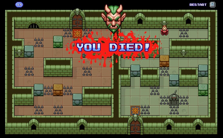 Dungeon Blocks Дата выхода 9 мар. 2022 Разработчик Fortcullis Games Жанр Торрент ожидается Добавьте в избранное, чтобы следить Dungeon Blocks - видеоигра в жанре Сокобан. Главные герои - два рыцаря, отправившиеся в поход, чтобы одолеть ужасного повелителя демонов. Первый рыцарь - блондин, носящий синий доспех, второй - шатен в красном. Соответствуя направлению проекта, они толкают большие кубы - блоки. Таким образом персонажи открывают доступ к следующему уровню. Звучит не слишком сложно, но разработчики добавили одну особенность. В Dungeon Blocks игрок управляет двумя воителями одновременно, и их действия являются зеркальными противоположностями. Если красный рыцарь пойдет вперед, то синий повернет назад. Это побуждает пользователя тщательно продумывать стратегию прохождения, используя на полную мощность логику и фантазию. Всего здесь реализовано 30 локаций и каждая немного сложнее предыдущей. Начальные уровни относительно легкие, чтобы новичкам было проще освоиться с игровым процессом. Но чем дальше продвинется геймер, тем более сложными станут испытания. Начиная с определенного момента на локациях появятся ловушки. Например, лазеры, установленные в стенах. Если кто-то из персонажей погибнет, то уровень придется начать заново. Но игрок и так может в любой момент выйти и прервать прохождение, поэтому за прогресс и сохранения не стоит опасаться. Управление осуществляется при помощи клавиш со стрелами, но разработчики также добавили поддержку контролера. Скачать торрент Скриншоты Показать больше Видео из игры Скачать БЕЗ торрента прямая ссылка через uTorria Системные требования ОС: Windows 7, 8, 10 Процессор: 2 GHz Intel Pentium 4 Оперативная память: 512 МБ Видеокарта: Intel HD Graphics Место на диске: 236 МБ Казуальная, Головоломка, Игры в 2D, Пиксельная графика, Фэнтези, Перемещение по сетке, Игры с геймпадом