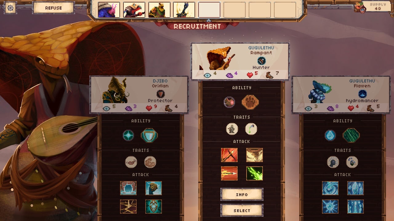 Sandwalkers: The Fourteenth Caravan – пиксельный рогалик, который переносит в фэнтезийную вселенную. Этот мир страдает от экологической катастрофы – практически вся поверхность покрыта песками. Растительность практически вымерла, как и животный мир. Люди остались жить в небольших островах с буйной флорой и между этими городами постоянно ходят караваны с ключевыми для цивилизации ресурсами. Протагонистом становится один из капитанов такого каравана, который отправляется в уже не первое опасное приключение.