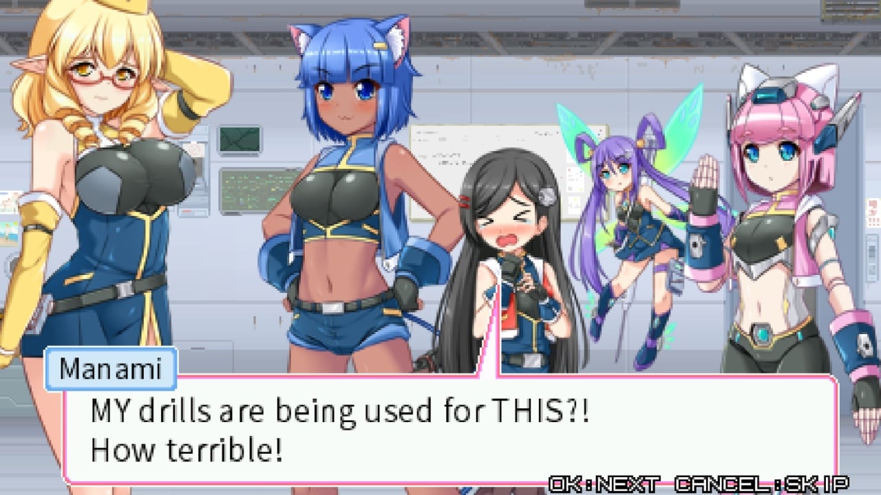 - Manami – застенчивая и гениальная девушка-механик, транспорт которой выстреливает буровыми снарядами;