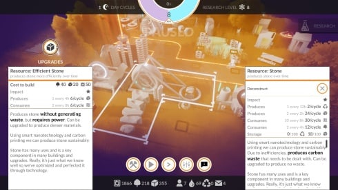 Ключевая механика в игре заключается даже не в самом возведении разнообразных зданий, а в их улучшении при помощи древа технологий. Таким образом, даже захудалый домик со временем можно превратить в прогрессивный пентхаус. Также нельзя забывать о населении, ведь с уровнем развития растут и их требования, которые важно вовремя удовлетворять, дабы они и дальше тщательно выполняли свою работу.