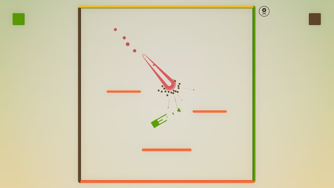 Flat Heroes показывает, что будет, если скрестить платформер с пулевым адом. В этой игре надо выполнять обычный и двойной прыжок, бегать, скользить по стенам и цепляться за них, атаковать, делать рывки, чтобы уклоняться от шквала вражеских снарядов. Проект выполнен в минималистичном стиле. Его двухмерная графика использует простейшие объекты и малое количество цветов. Каждый уровень умещается в пределах одного экрана. А всего этапов тут более 300. Все они были сделаны вручную. Полноценный сюжет отсутствует. Есть кампания без истории, поделенная 10 миров. Изначально доступен только один из них. Он состоит из 15 карт. Чтобы разблокировать другие измерения, нужно побеждать боссов. Главарей всего десять.