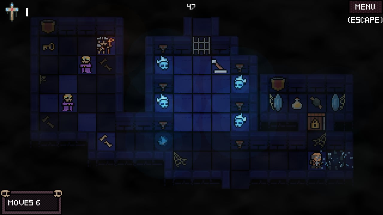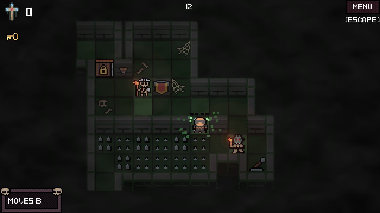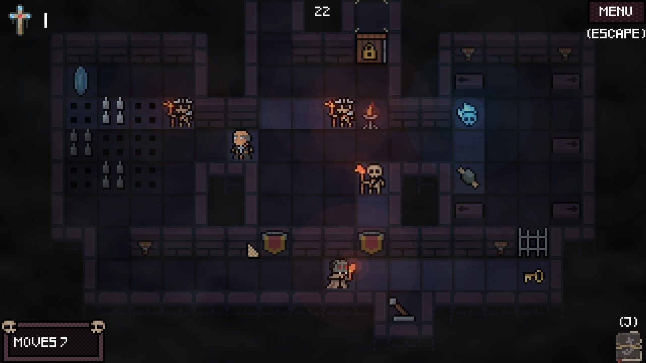 Темный склеп – это пошаговый стелс и по совместительству игра-головоломка. У проекта двухмерная пиксельная графика. Камера расположена сверху и немного под углом. Противники кроме внешности различаются поведением и радиусом зрения. Одни враги могут смотреть одновременно впёред и назад, другие видят только по диагонали, некоторые только стоят, а остальные активно передвигаются, и так далее. Кроме них на картах встречаются ловушки. Видеоигра разделена на уровни с нарастающей сложностью. Всего их 60. Чтобы пройти этап, надо отыскать ключ от двери добраться и до выхода. При этом желательно потратить как можно меньшее число ходов. Постепенно вводятся новые супостаты и механики. Также здесь есть битвы с боссами.