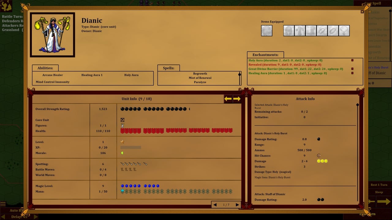 Империи божеств – это 4Х-стратегия. Её геймплей местами напоминает Master of Magic. Перед началом прохождения можно процедурно сгенерировать карту в редакторе, выбрав для неё размер и тип, а также задав соотношение воды и суши. В игре надо изучать земли, добывать еду, минералы и другие ресурсы, проводить исследования (тут есть 200 технологий), создавать и расширять города (доступно более 160 зданий для постройки), развивать армию, призывать существ, пользоваться услугами наёмников. Своих бойцов здесь позволяют не только улучшать, но и экипировать разным волшебным лутом. Оружие, доспехи, шлемы, кольца, сапоги, амулеты и щиты для них можно найти или скрафтить. Присутствует возможность перекладывать часть обязанностей на плечи искусственного интеллекта, чтобы сосредоточится на других аспектах игрового процесса. К примеру, игрок может передать ИИ управление над поселениями или рабочими.