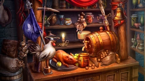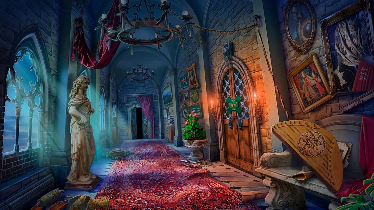 Камелот: Гнев Зеленого Рыцаря – это квест с низким порогом вхождения и видом от первого лица. Здесь надо исследовать локации, искать и применять на интерактивные части окружения полезные вещи, заниматься поиском предметов на экране, болтать с NPC и развлекаться в мини-играх. Этот тайтл может предложить 60 сцен, 55 мини-игр и загадок, 45 пазлов со скрытыми объектами. Можно дополнительно увеличить время прохождения, если задаться целью отыскать все 65 коллекционных артефактов. На выбор дается 4 уровня сложности: казуальный, продвинутый, хардкорный и кастомный. По традиции для жанра "я ищу" тут есть карта, позволяющая телепортироваться между комнатами, и кнопка с вызовом подсказок, что перезаряжается после каждой активации.