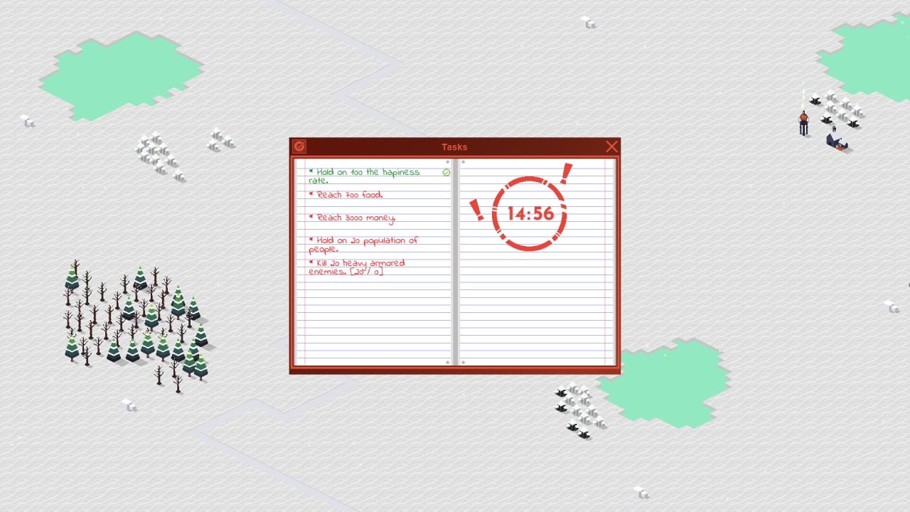 Winter and People Дата выхода 11 апр. 2022 Разработчик Mercimek Games Жанр Стратегии, Выживание, Приключения, Инди Торрент ожидается Добавьте в избранное, чтобы следить Симулятор строительства Winter and People сочетает в себе также жанр tower defence, действия которого происходят на низкополигональных двухмерных снежных локациях с изометрическим видом. Здесь игроку нужно возводить здания и тепловые башни, а также ставить защитные форты, чтобы не пропустить через пролегающую по городу к ратуше дорогу врагов. В поселении есть местные жители, которым можно отдавать приказы, чтобы они выполняли разнообразную работу, тем самым поддерживая жизнь и обороноспособность.В Winter and People юниты могут иметь такие профессии: Лесорубы – занимаются заготовкой древесины. Шахтеры – добывают из недр шахт уголь и железную руду. Топливщики – с помощью секретных формул делают из угля и дерева топливо. Одним из главных сооружений является отопительная станция, которая охватывает некоторую область и генерирует тепло, перерабатывая произведенное сырье. Если технические здания расположены на большом удалении от обогрева, они быстро замерзают и перестают функционировать. В игре также присутствуют элементы торговли, которые позволят сбалансировать ресурсы. Если есть переизбыток какого-то продукта, можно продать его и закупить тот материал, который сейчас в дефиците. Еще один из способов заработка денег – налоги. Однако не стоит переусердствовать в этом, иначе народ взбунтуется и перестанет работать. Скачать торрент Скриншоты Показать больше Видео из игры Скачать БЕЗ торрента прямая ссылка через uTorria Системные требования ОС: Windows 7, 8, 10 (64 бита) Процессор: Intel Core i2 Duo E7600 2 Core 2 Оперативная память: 2 ГБ Видеокарта: Amd Radeon HD 4450 512 МБ Место на диске: 50 МБ Tower Defense, Градостроение, Изометрия, Пиксельная графика, Point and click, Казуальная, Упрощённый рогалик, Антиутопия, Игры в 2D, Военные действия, Минимализм, Рогалик, Стилизация, Вид сверху, Тактика в реальном времени, Строительство