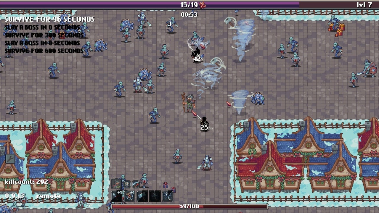 Crimson Dawn RUS v Update 4 Новая версия Полная версия Последняя Дата выхода 11 апр. 2023 Разработчик Purple Lake Жанр RPG, Экшены, Аркады, Инди, Приключения Смешанные на основе 328 обзоров в Steam 61% Обновлено 27 февраля 2025, 05:51 Список изменений Crimson Dawn позиционируется своими создателями как Hack & Slash RPG. В этой игре не нужно закликивать противников, потому что герой атакует противников самостоятельно. Он сам выбирает себе цели и применяет свой арсенал. Типы атак зависят от имеющегося у бойца оружия и артефактов. У игрока минимальный контроль над своим персонажем. Геймер может лишь перемещать своего подопечного с помощью геймпада, мыши или клавиатуры и решать, как именно его прокачивать. Также пользователю разрешают настраивать забеги. Перед каждой вылазкой он может выбирать локации и модификаторы. Чем сильнее окажутся монстры и боссы, тем более ценную награду юзер получит в случае победы. На русский язык название проекта можно перевести как Багровый Рассвет. Так в этой видеоигре именуется явление, что повышает боевые способности людей, но плохо влияет на их рассудок. Чем дольше герой был ему подвержен, тем больше времени ему потребуется на восстановление в городе после вылазки. Это духовный наследник Vampire Survivors в плане геймплея. Его смысл состоит в том, чтобы маневрировать между толпами монстров, пока воин сам с ними разбирается. В этой игре разрешают нанимать персонажей, улучшать их, апгрейдить им оружие и заклинания. По сюжету пользователь руководит группой наемников, что пытается добраться до Багрового Оракула и остановить зло. У всех бойцов и снаряжения есть деревья прокачки. Скачать торрент Скриншоты Показать больше Видео из игры Скачать Crimson Dawn Тип релиза Пиратка (Таблетка: Не требуется) Версия v Update 4 (Полная) Последняя Размер 57.35 МБ Интерфейс Русский Озвучка Отсутствует Скачать .torrent торрент файл Скачать БЕЗ торрента прямая ссылка через uTorria Системные требования ОС: Windows 7, 8, 10 (64 бита) Процессор: Intel Core i3 3300 Оперативная память: 1 ГБ Видеокарта: Intel HD 3000 Место на диске: 300 МБ Рогалик, Упрощённый рогалик, Игры в 2D, Пиксельная графика, Ролевой экшен, 80-е, Вампиры, Твин-стик шутер, Казуальная, Шутер с видом сверху, Игры с геймпадом
