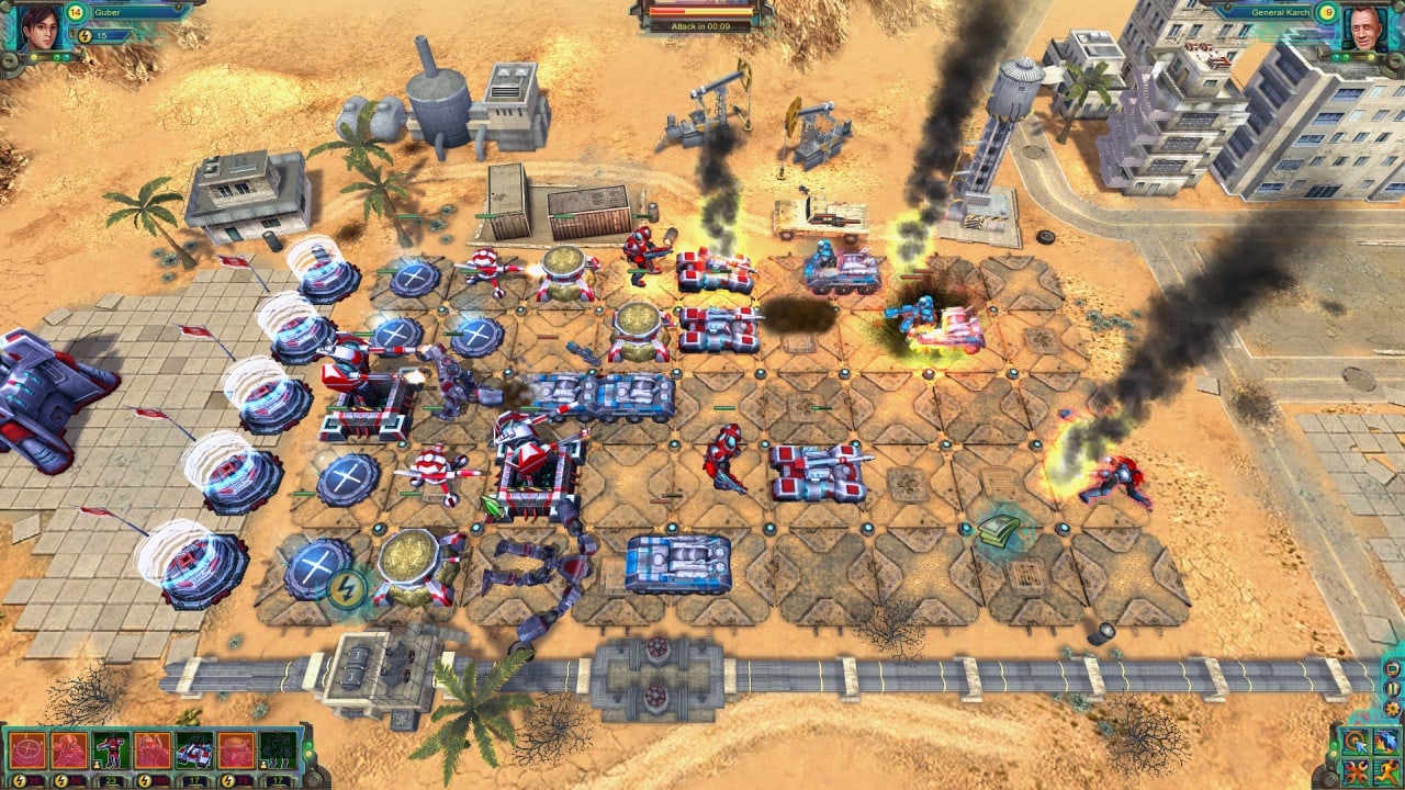 Robowars относится к жанру Tower Defense. Изначально это была браузерка. Позже разработчики переиздали свой проект. Выбор уровней происходит на двухмерной карте. А вот сами битвы проходят на полностью трехмерных этапах. Локации довольно разнообразные. Схватки проводятся в пустынях, городских кварталах и даже на палубах кораблей. Юзер смотрит на происходящее как бы сверху и сбоку одновременно. Есть сюжетная кампания, состоящая из 55 заданий. Миссии разрешают запускать повторно, чтобы выполнить все дополнительные цели. От них зависит рейтинг. Его необходимо повышать, чтобы получать доступ к дополнительному контенту. События разворачиваются на планете Praymos. Там две фракции (Solar Union и Trade Confederation) ведут между собой борьбу за ресурс под названием Neonium.