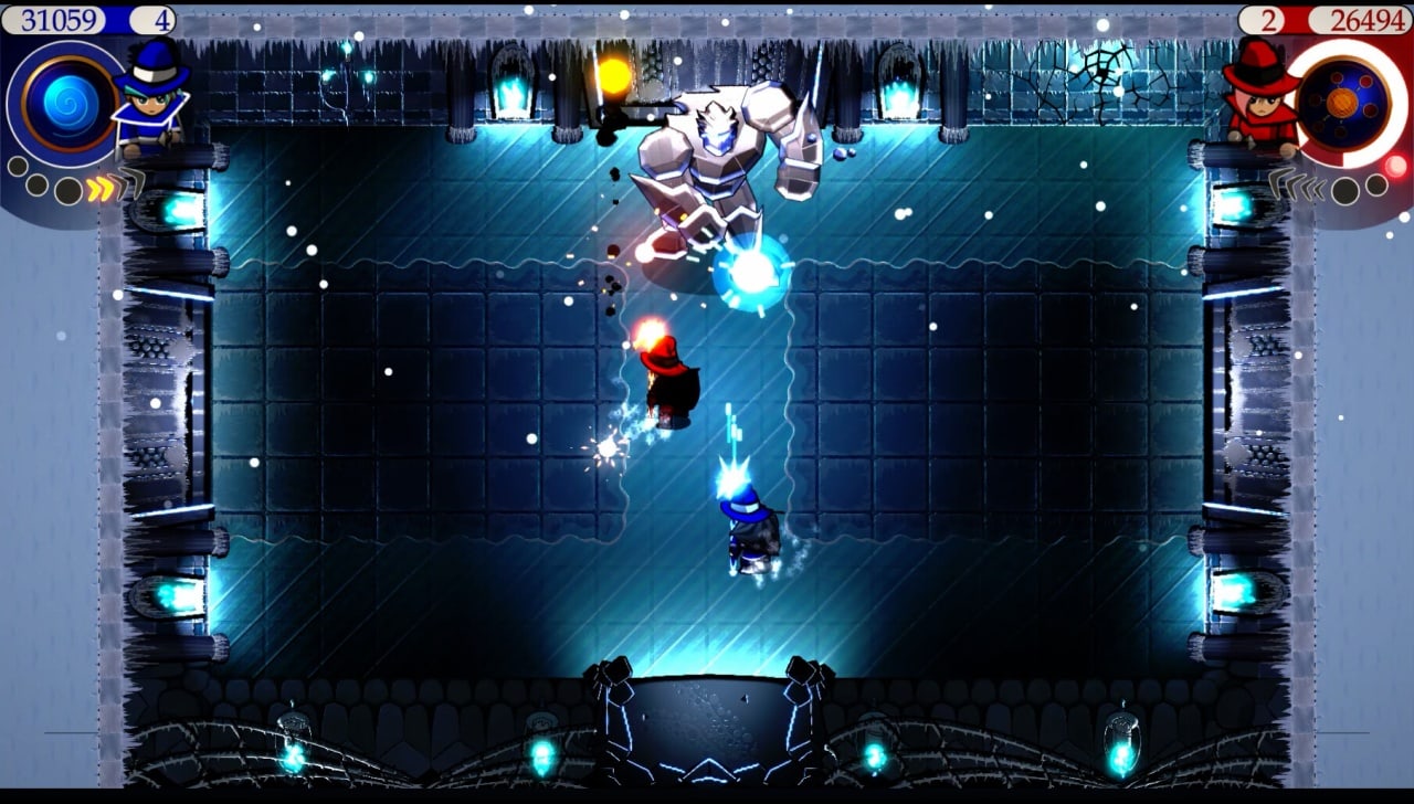 Spellbearers – это аркадный шутер с видом сверху. В него можно играть как одному, так и вместе с другом за одним ПК. На выбор предоставляется 4 персонажа, что различаются цветом одежды и проджектайлов. Все они являются магами. Несмотря на наличие четырех героев, локальный мультиплеер рассчитан только на 2 человек. В игре нужно перемещаться и стрелять в разных направлениях, сражаясь с толпами противников на тесных аренах. У каждого типа недругов есть свои слабости. На уровнях периодически появляются бонусы. Одни из них выпускают разряды молний, другие призывают и заставляют вращаться вокруг колдунов мечи, третьи позволяют бросать рикошетящие гранаты, и так далее.