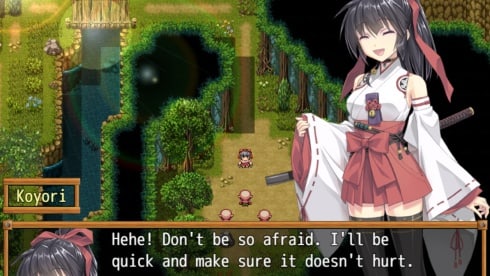 Божественная жрица Коёри является японской ролевой игрой для взрослых. В ней есть смена дня и ночи. Исследование локации происходит с видом сверху в реальном времени в духе старых JRPG. А бои тут пошаговые. Они проходят от первого лица. В схватках можно включать функцию автобоя. У главного женского персонажа есть дерево умений. Эту барышню можно прокачать в мечницу или волшебницу. Также здесь присутствует частичная озвучка. Поскольку это эротический проект, то геймплей в нём разбавляется хентайными сценками с участием людей и монстров. Для каждого типа врагов предусмотрены свои картинки с обнажёнкой.
