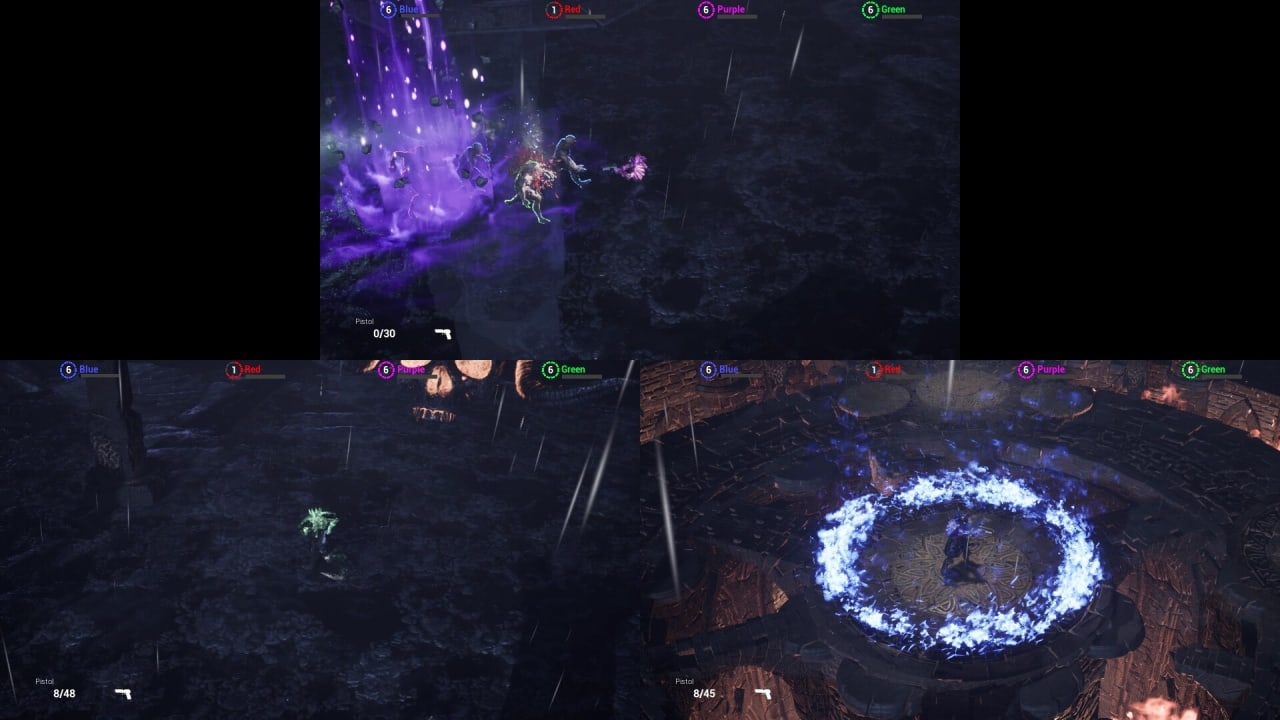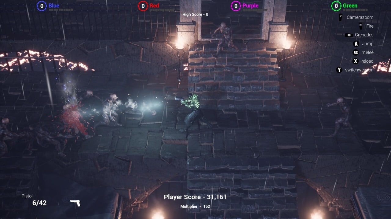 Waking Knightmare – это кооперативный арена-шутер с элементами хоррора на выживание. Камера в данной игре всегда расположена сверху и под углом. Менять её ракурс нельзя (приближать или отдалять картинку – тоже). Она сама следует за персонажем. Здесь только локальный мультиплеер. Он позволяет 2-4 пользователям развлекаться за одним ПК через разделенный экран. Один юзер сможет управлять своим героем при помощи клавиатуры и мыши. Остальным участникам потребуются геймпады. Возможность играть в одиночку тоже присутствует. Тайтл содержит в себе 6 карт: the Beginning, the Encounter, Beneath, the Arena, the Pit, Hollow Grounds. Одни карты лучше проходят для прохождения в соло, в то время как другие больше рассчитаны на кооп.
